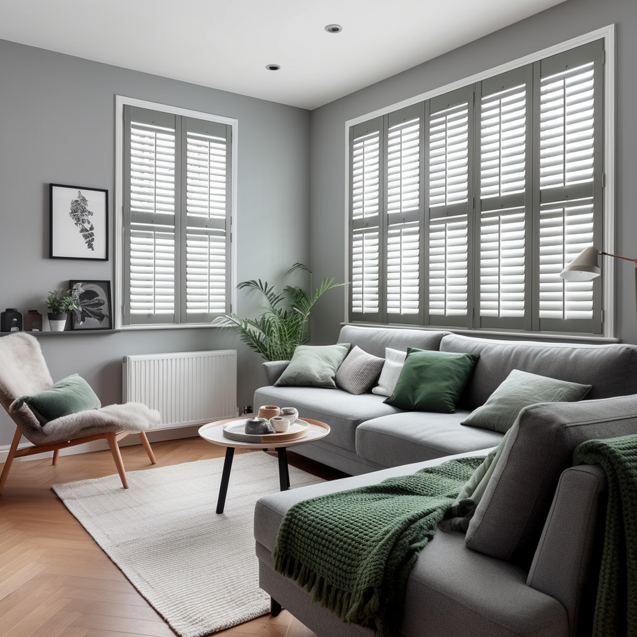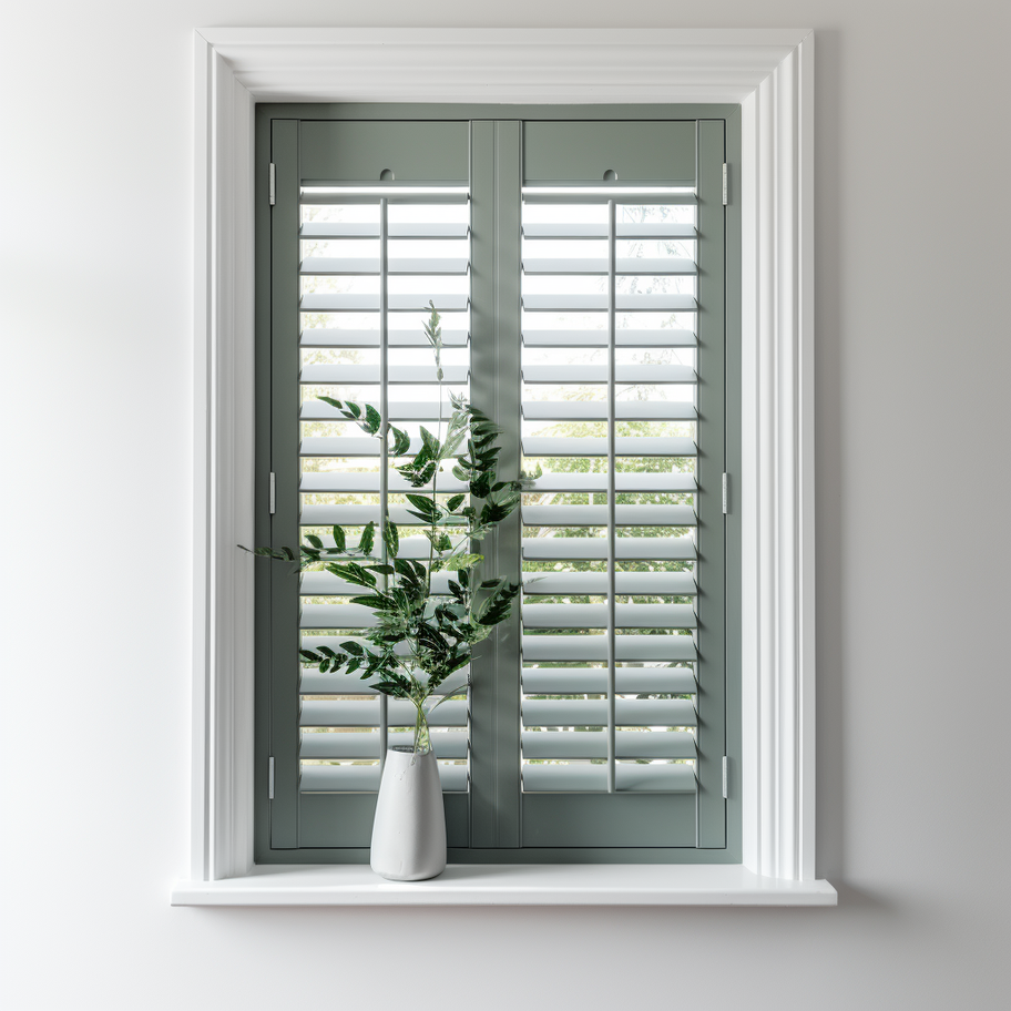 Introducing our exquisite Moss Grey Plantation Shutters, the epitome of elegance and functionality for any modern or classic home. These shutters are designed to offer unparalleled style, privacy, and light control, enhancing the ambiance of any room they grace.