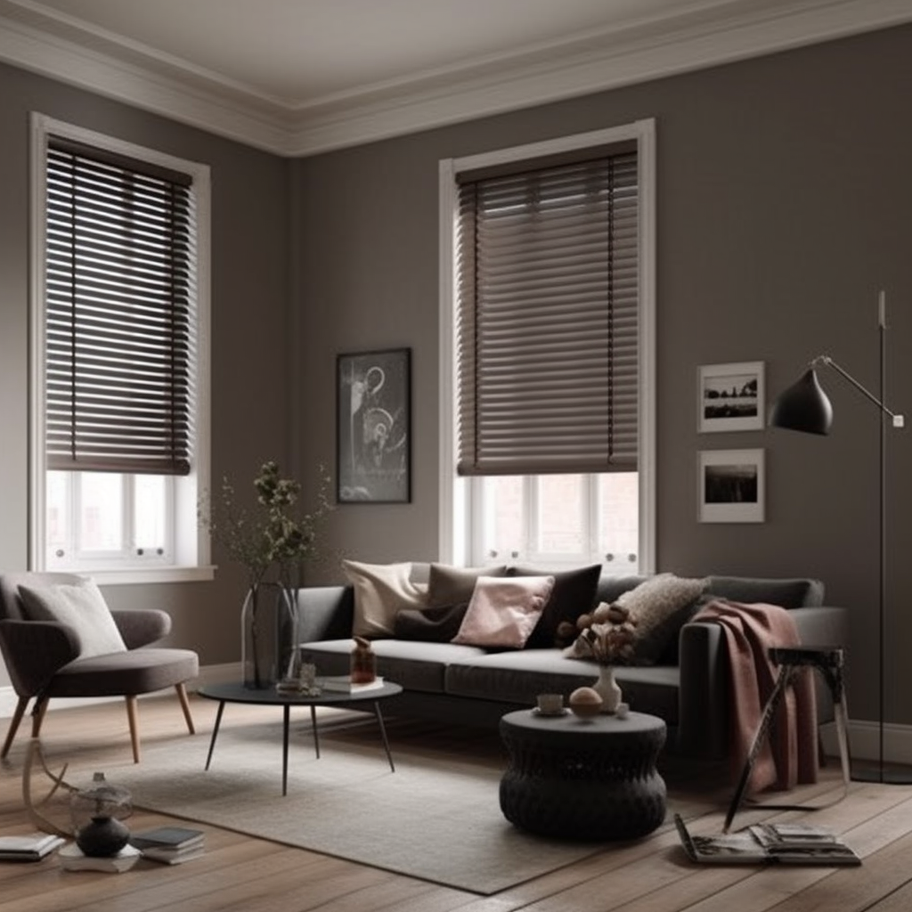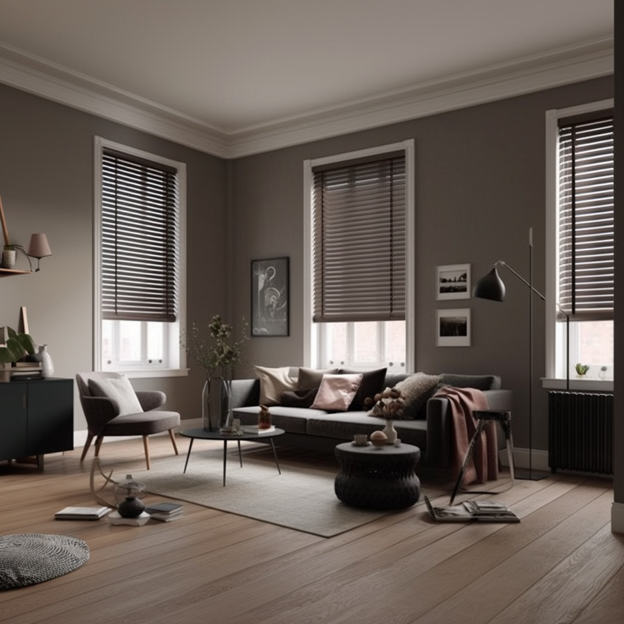 Taupe Wooden Slatted Blinds